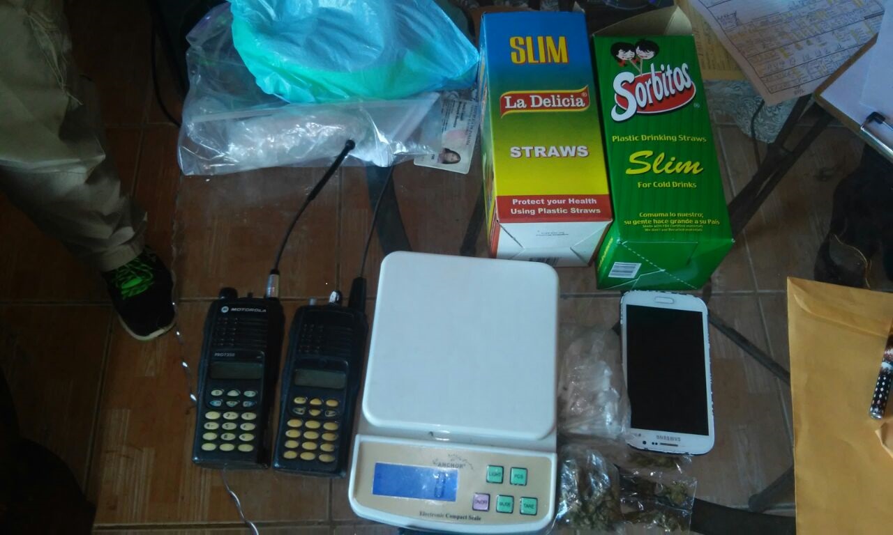 Se trató de un allanamiento coordinado con la Fiscalía Especializada en Asuntos Relacionados con Drogas que se efectuó en Cáceres, fueron decomisados 54 carrizo plásticos con sustancia blanca que se presume es cocaína, tres sobres y una bolsita con hierba seca que se creé es marihuana. Además de un colador, color verde con residuos de un polvo blanco, una tijera, una cuchara con restos de supuesta cocaína, una vela, una trituradora con restos de marihuana, dos cajas con carrizos vacíos y un revólver calibre 38 sin municiones.